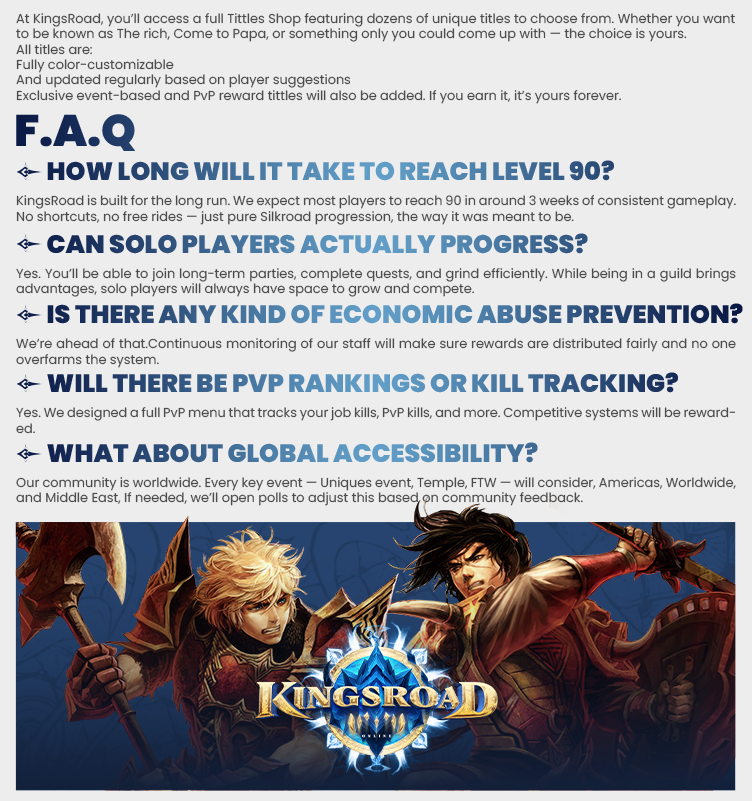 [CENTER][IMG]http://i.epvpimg.com/vQT2eab.png[/IMG] [URL="https://discord.gg/Hd3dAGmcFE/"][IMG]http://i.epvpimg.com/0CCheab.png[/IMG][/URL] [URL="https://www.facebook.com/profile.php?id=61574681026269/"][IMG]http://i.epvpimg.com/OD93dab.png[/IMG][/URL][URL="https://kingsroad.online/"][IMG]http://i.epvpimg.com/7Mssbab.png[/IMG][/URL][URL="https://kingsroad.online/download.html/"][IMG]http://i.epvpimg.com/r8z7aab.png[/IMG][/URL][/CENTER]