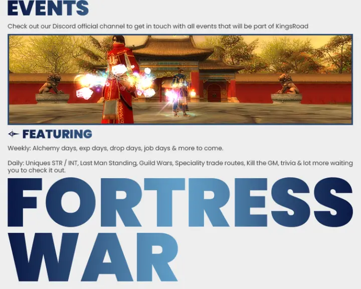 Automatic events will be available in KingsRoad. A play2win system helps you to earn free silks without donating. There are many events available in our game: