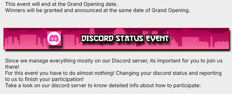 - Discord Status Event: https://discord.gg/hAMmgfhe73