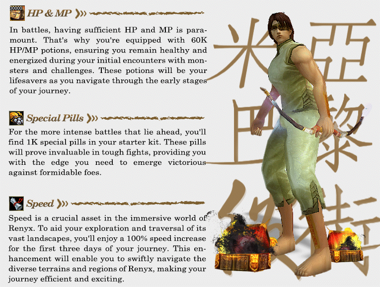 You'll be eligible to receive the starter package filled with amazing goodies that will assist you throughout your adventure for a whole week.